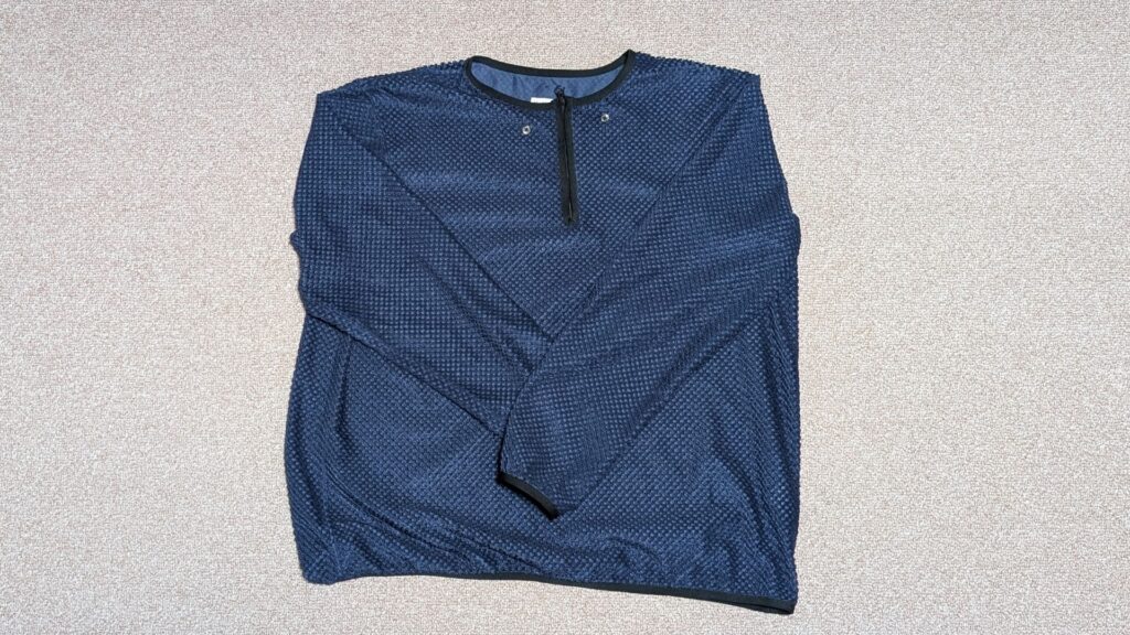 - 保温着は「ENLIGHTENED EQUIPMENT / Torrid Pullover」で防寒を強化