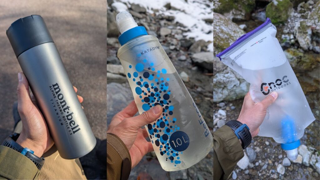 - 翌朝すぐに温かい飲み物を飲むことを目的に、「モンベル / チタン アルパインサーモボトル 0.5L」を携行