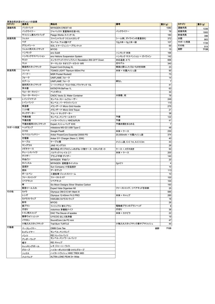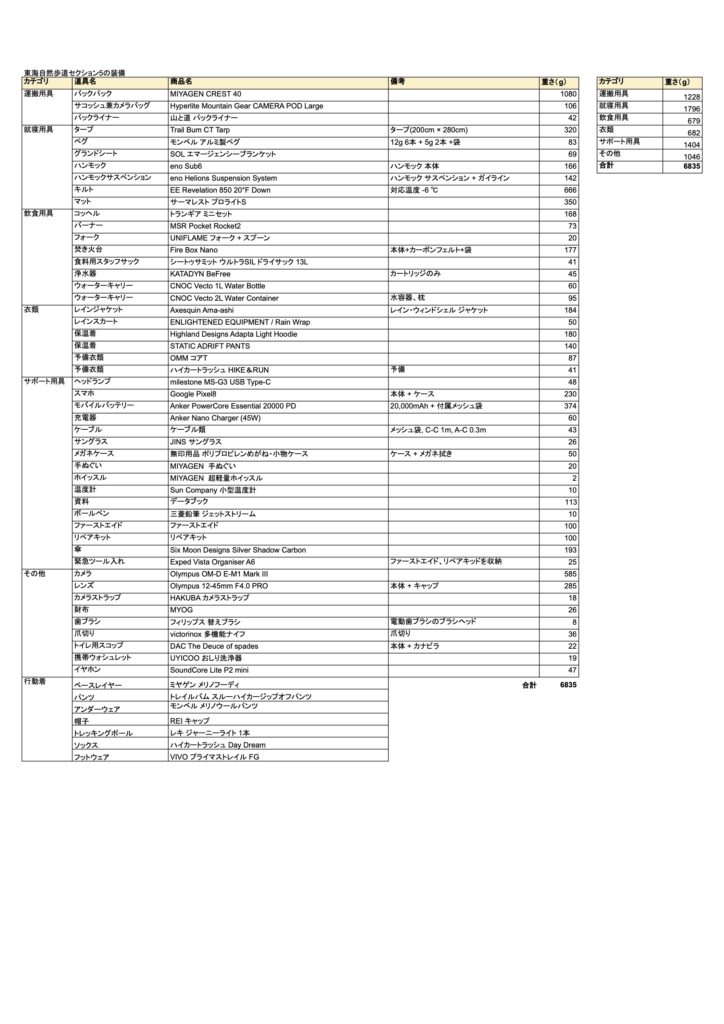 1,000kmを超えるロングトレイルは、季節や区間によって必要な装備が大きく変わります。