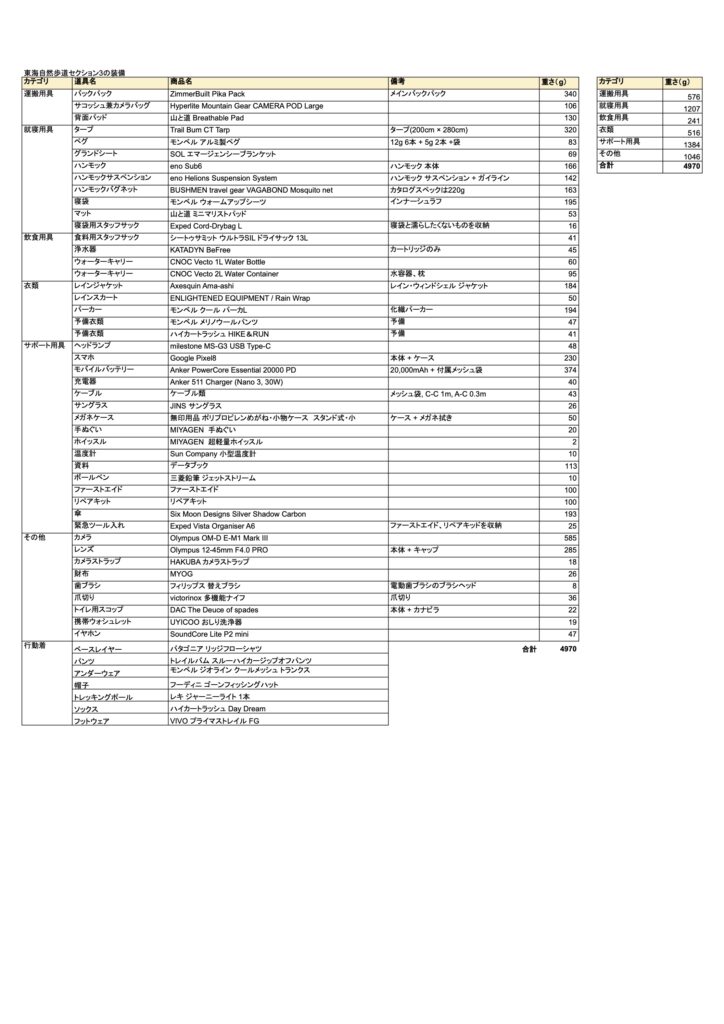 東海自然歩道の装備リスト|7回のセクションハイクで踏破した全装備【ロングトレイル】