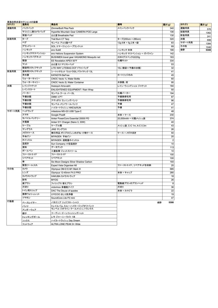 この記事では、各セクションで使用した装備と、その選択の意図・実際に使ってみた感想を紹介します。