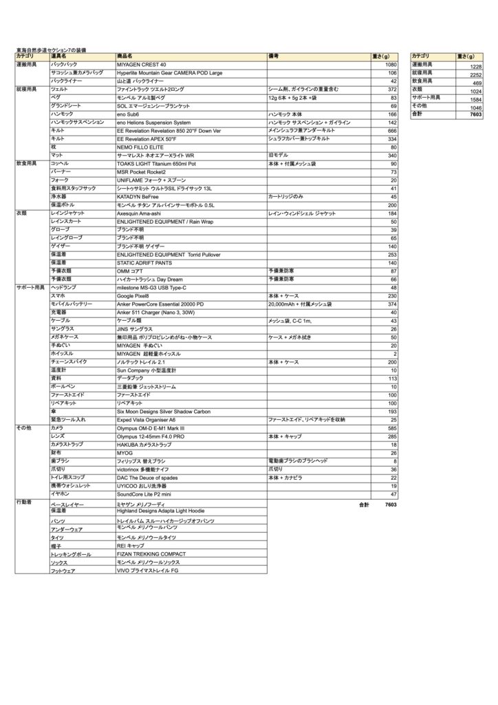 私は7つのセクションを歩くなかで、それぞれの区間ごとに旅のイメージを持ち、それに合わせて装備を選んできました。