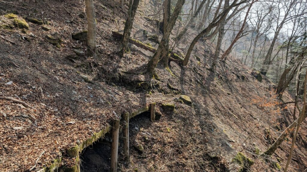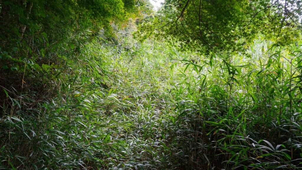 自分の身長ほどの藪をかき分けて進む場所や、足場が脆く崩れかけている斜面などもありました。